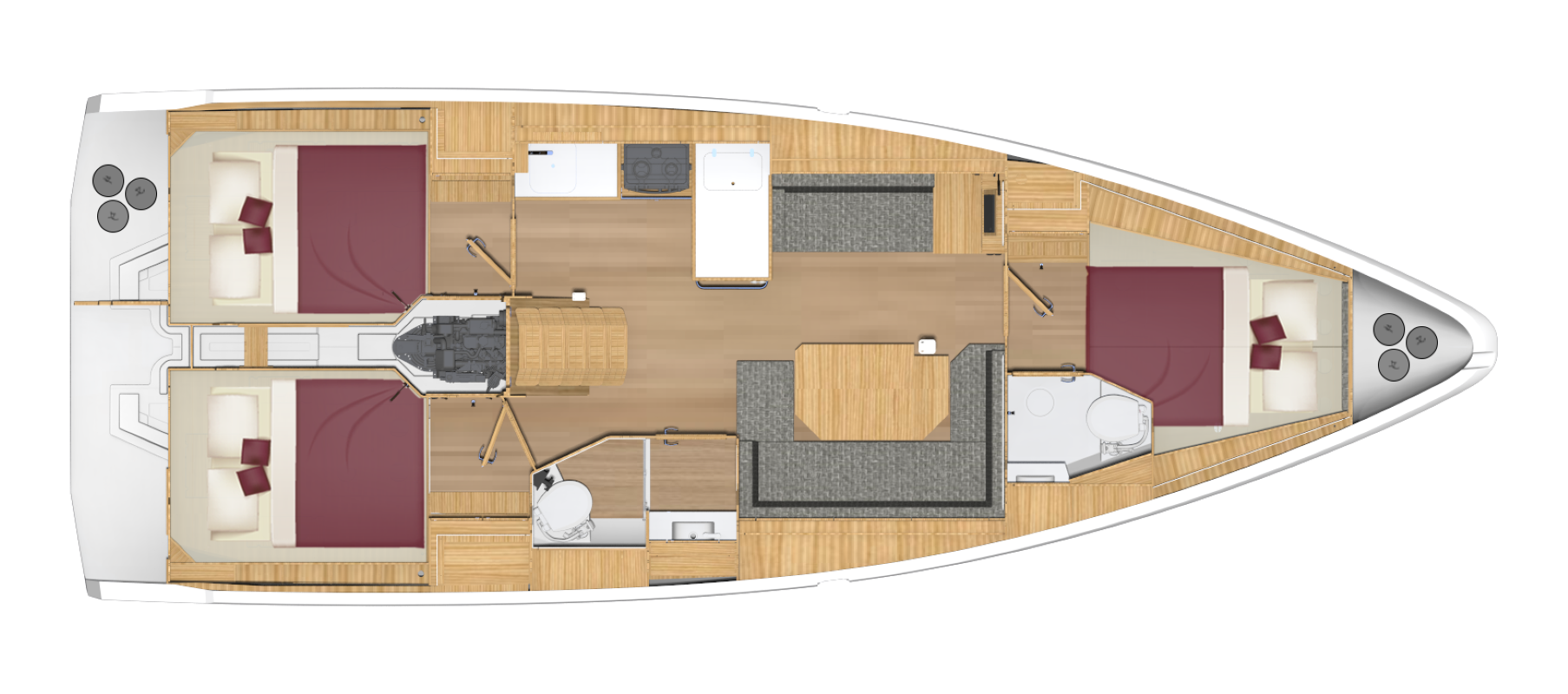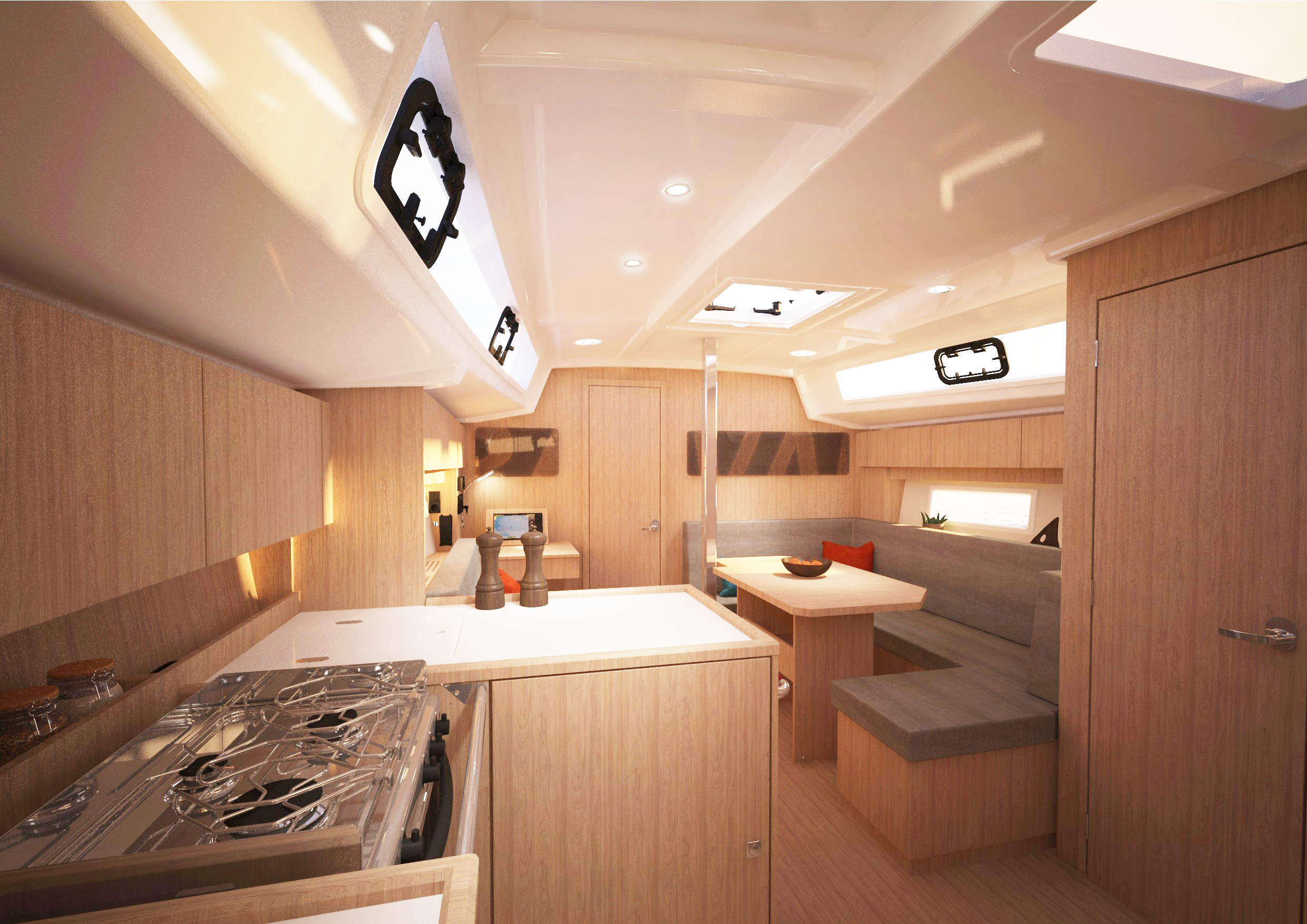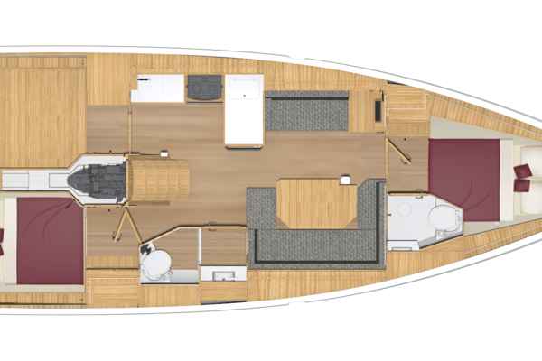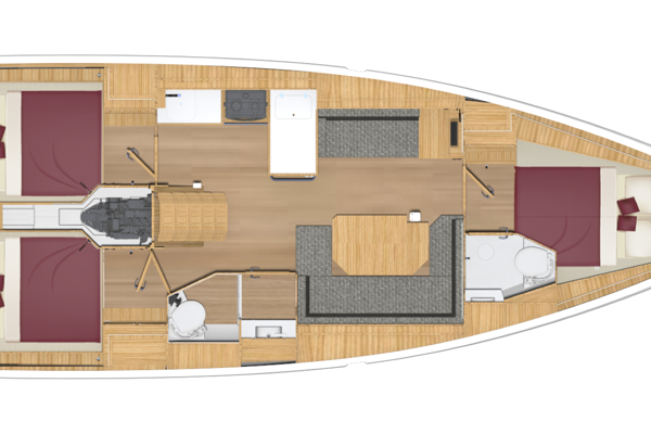 BAVARIA C38 kombinerer perfekte sejlegenskaber, nem håndtering og maksimal udnyttelse af det indvendige rum. Karakteristiske designfunktioner, såsom BAVARIA V-bov og Chines agterstavn, garanterer sikre og hurtige sejlegenskaber og en utrolig mængde plads under dæk. I ejerkahytten i stævnen måler dobbeltsengen sensationelle 1,73 x 2 meter. Køjepladserne i agter kahytterne måler 1,50 x 2 meter, hvilket også må være tæt på rekord for denne bådstørrelse.