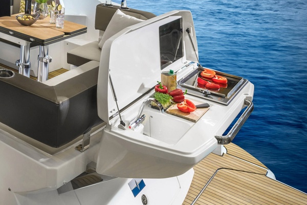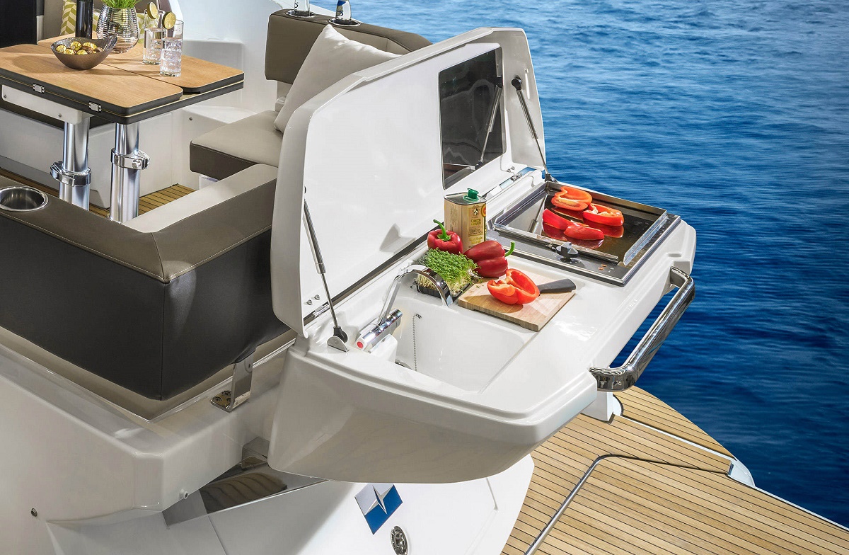 Der er tilpas stor motorkraft, og båden sejler nemt 36 knob. Der er monteret et væld af udstyr, og som kaptajn sidder man rigtig godt og mageligt på styrepladsen, hvor der er fantastisk overblik over alle tænkelige instrumenter og et godt udsyn, når båden sejles. Der er et lækkert pantry, hvor skibskokken kan tilberede en god middag til besætningen, der er lækre toilet- og badeforhold, og kahytterne er noget helt for sig selv - alt ombord er utroligt indbydende.