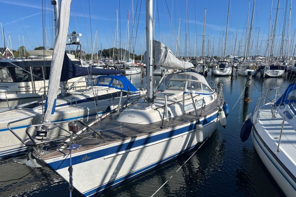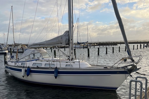 HR 34 er er smuk, velsejlende og godt indrettet sejlbåd kendetegnet ved kvalitet og sikkerhed. Den harrorpindsstyring og dermed et rummeligt cockpit. Teakdækket er velholdt og vedligeholdes efter værftets anbefalingermed Boracol. Motoren er hvert år serviceret af autoriseret værksted. Om læ er båden velindrettet med fuldståhøjde overalt. Der er salon, to separate kahytter og et baderum med toilet. Pantryet i bagbords side vednedgangen fra cockpittet er i vinkel layout med dobbelt vask, koldt og varmt trykvand, slingrekomfur med ovn og togasblus samt en rummelig køleboks tilsluttet kølekompressor. I styrbord side overfor pantriet er der etnavigationsbord med kontrolpanel for al elektronik ombord. Cockpittelt med fuld ståhøjde. Båden er bygget i 1995og har nr. 151. Båden er velholdt. Specificeret udstyrsliste kan sendes på anmodning.